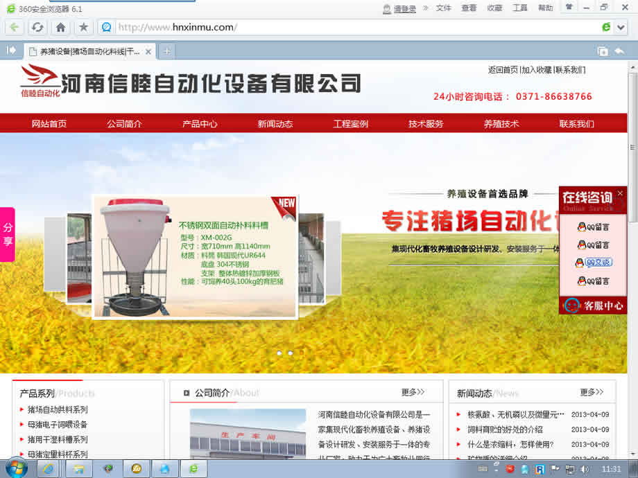 下面我们以某企业站为实例进行实际分析:该网站是一家养猪设备厂家,网站的风格以大气、清新为主,版块分明,对访问者来说,一眼就能打到需要的内容,加之大气的设计,更增加的网站的可信度。
