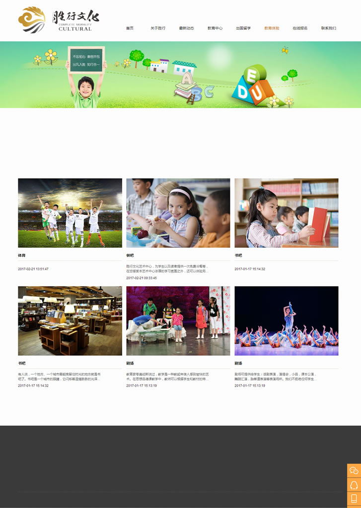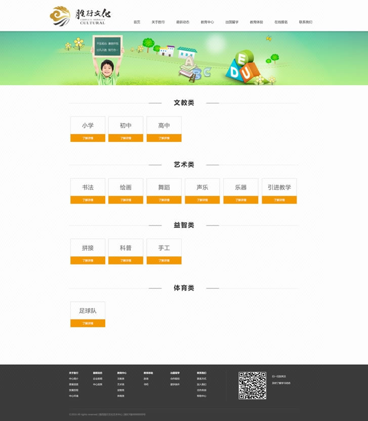 教育中心:即课程中心,包含:文教类、艺术类、益智类、体育类。