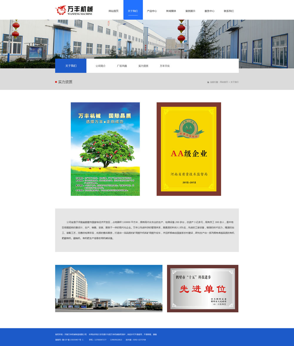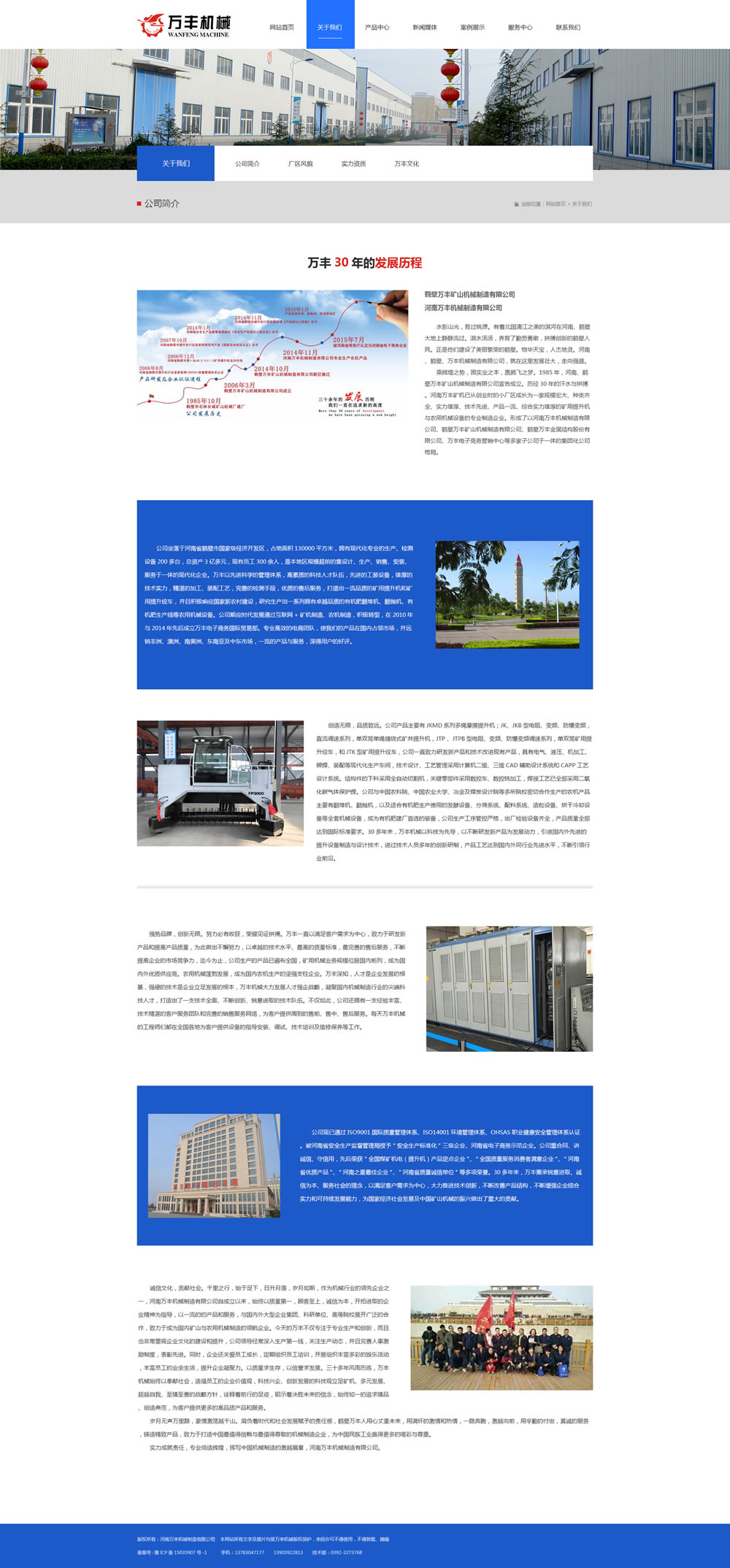 项目简介:机械行业企业门户网站,万丰机械是鹤壁历史悠久的机械企业,成立已30年有余;这次做的是企业的官方网站,作为主站使用,定位高于其他网站;要求:大气、有气势、符合大型机械企业的形象。