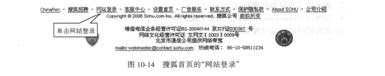 (1)登录到搜狐网站,找到“网站登录”,如图10-14所示.