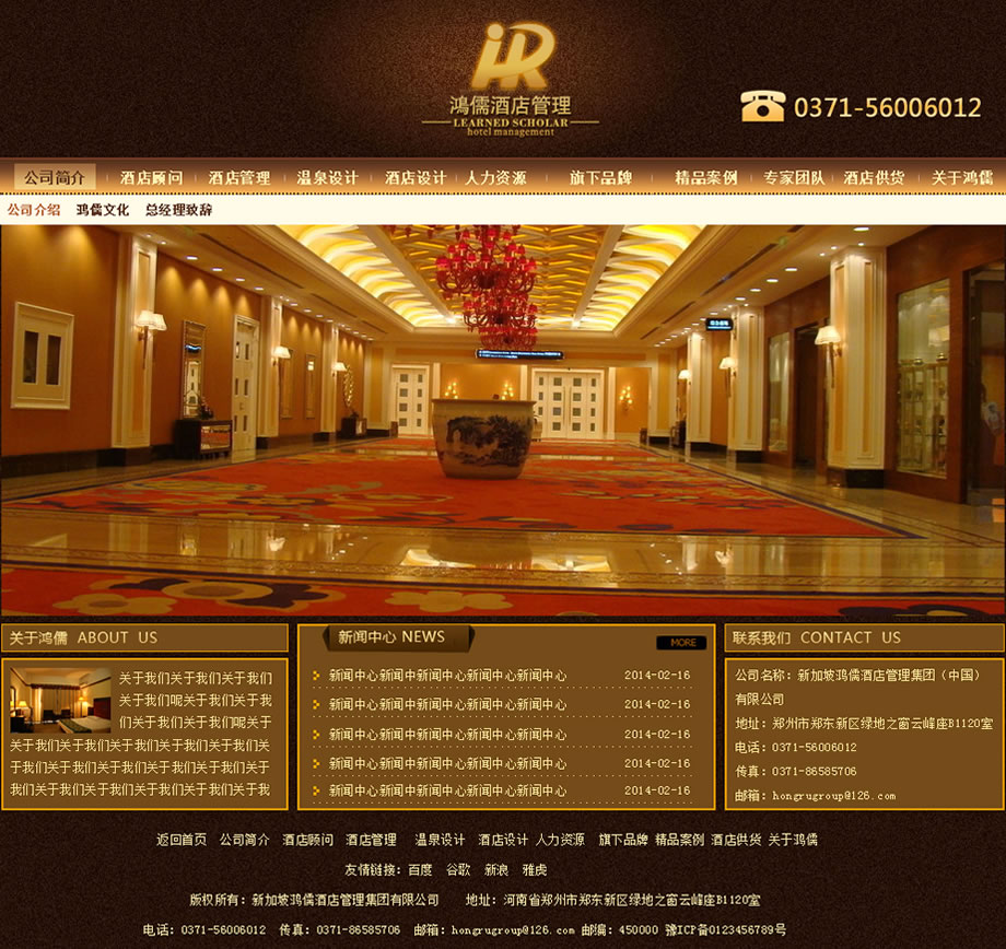 该站属于酒店管理类公司,我公司近几年做过类似网站,有相关经验。公司隶属于新加坡,是中国分公司,有着新加坡的背景,又属于酒店管理行业,因此,网站整体以雍容、华贵、奢华为主要设计思路,突显公司的行业形象。