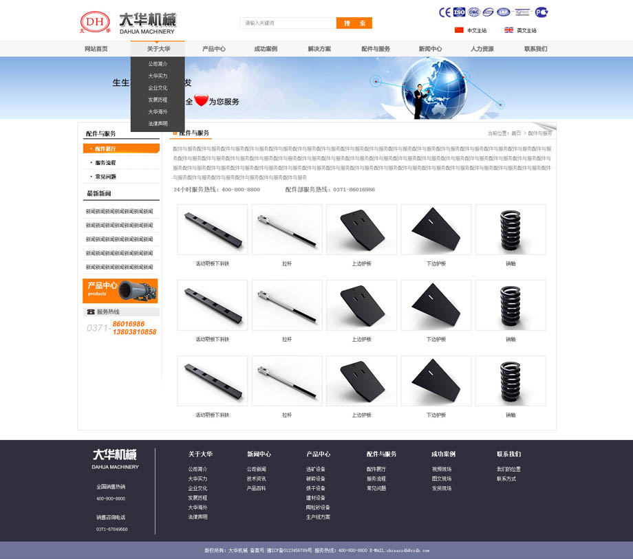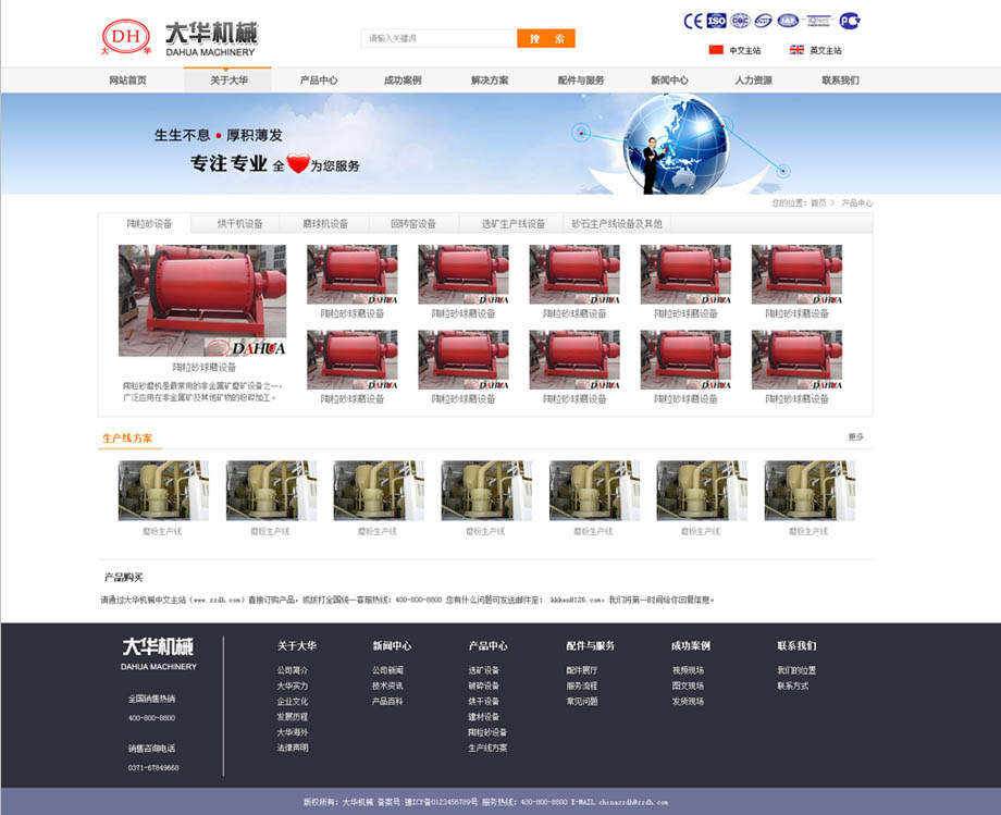 网站风格在设计上,界面要美观、大气、有气势,符合其在矿山机械行业中的地位。