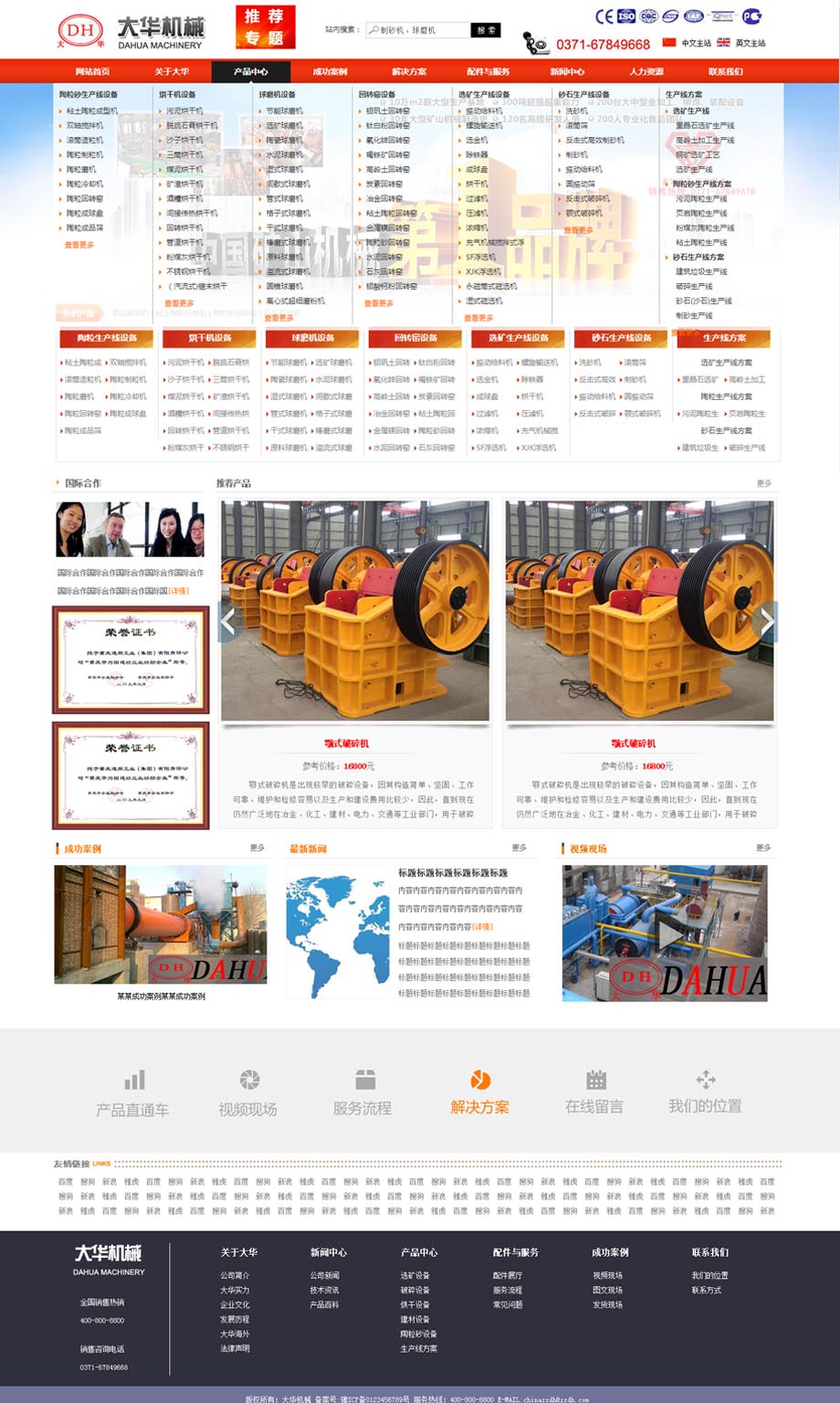该网站是大型机械集团网站,在以突出企业形象的基础之上,展示大量集团产品,又兼顾搜索引擎优化。郑州大华机械以“以振兴民族工业 国家昌盛为己任”为企业发展理念,逐渐发展成为矿山机械行业领军品牌 。