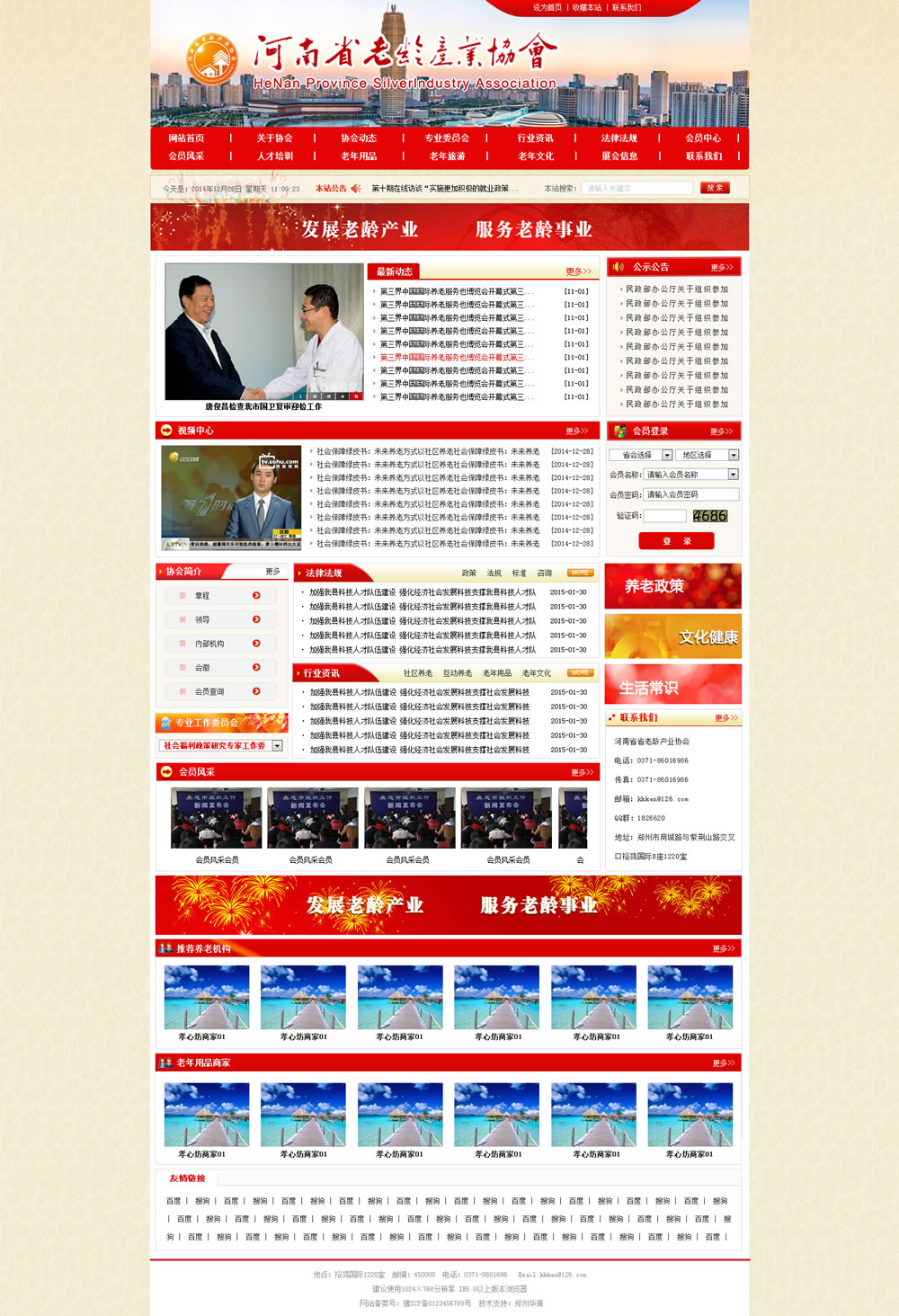 1、整体版式:受所属行业的限制,属于老年行业,版式应中规中矩;典型的政府、事业单位的上、中、下结构,条理清晰,结构简单;