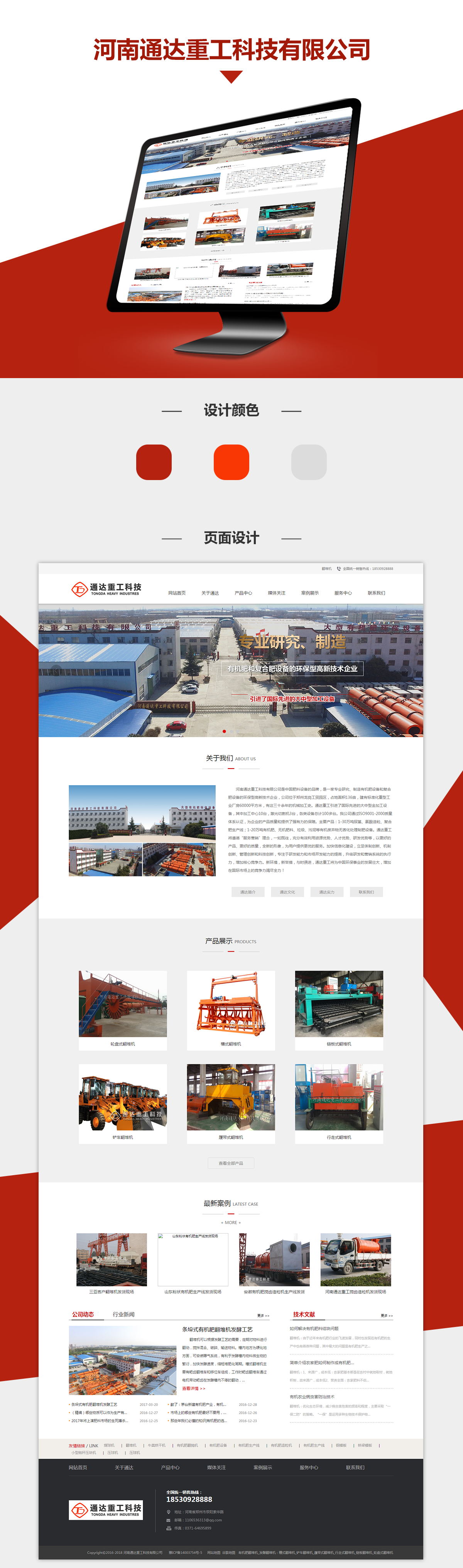 这个网站只是通达重工众多网站中的一个,网站整体设计布局工整,简洁明了,采用红色作为网站标题颜色和点缀色,给人以热情向上的感觉,稳重而不失活泼,灰色背景上的白色产品列表,也显得非常干净美观,高深度的banner显得网站非常大气。